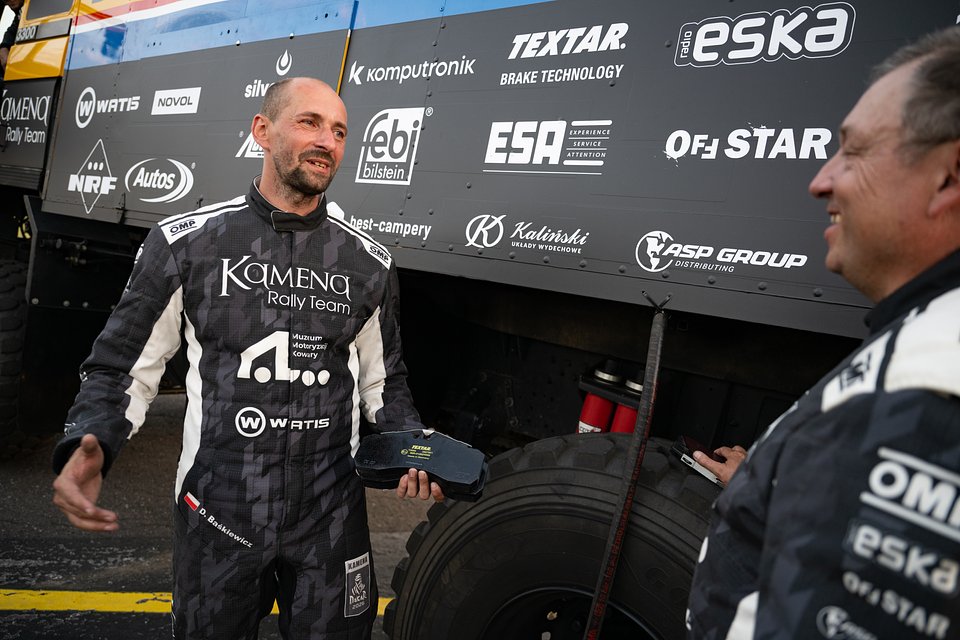 Każdego najczęściej interesuje, ile ta ciężarówka ma koni, w ile przyspiesza do setki. Ale nikt nie pyta, jak skutecznie ona hamuje? A to właśnie hamulce decydują o bezpieczeństwie. Na trasie masz ułamek sekundy, żeby podjąć decyzję: gaz czy hamulec. Testowaliśmy okładziny Textar i sprawdziły się świetnie, dlatego to one będą dbały o nasze bezpieczeństwo podczas Dakaru – mówi Tomasz Białkowski, kierowca Kamena Rally Team.