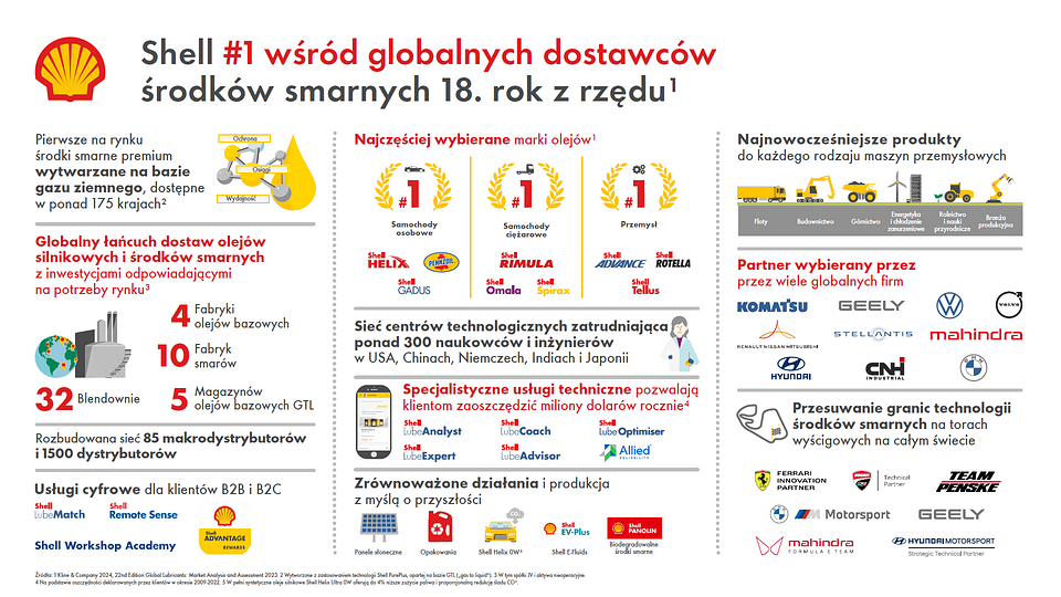 "Utrzymanie przez kolejny rok statusu globalnego dostawcy numer jeden środków smarnych to dla nas duża satysfakcja. Wypracowana pozycja podkreśla nasze zaangażowanie w dostarczanie odpowiednich środków smarnych i płynów zarówno odbiorcom komercyjnym i przemysłowym, jak i indywidualnym. Wyróżnienie jest efektem oferowania innowacyjnych, najwyższej jakości produktów, które spełniają potrzeby naszych klientów na całym świecie" – powiedział Łukasz Radzymiński, Dyrektor Sprzedaży w Dziale Olejowym Shell Polska.